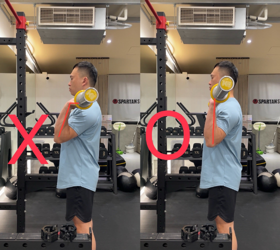 槓鈴肩推常見錯誤2:推起時槓鈴在身體前方