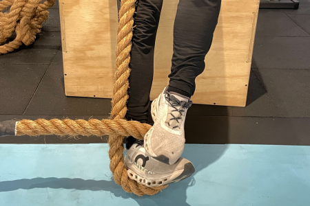 攀繩是一個需要上肢肌力、核心控制與腿部輔助技巧的障礙,勇士們必須迅速爬上繩索,拍擊頂端鈴鐺,再安全下滑。許多新手會只靠手臂的力量上攀,導致快速疲勞,力竭,但正確的方式是核心與腿部輔助技巧是成功的關鍵。