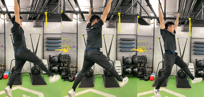 單槓考驗的是握力、上肢肌力與擺盪技巧。勇士需從起點攀爬至終點,透過手臂的擺動完成橫渡,關鍵在於掌握節奏與減少耗力。
