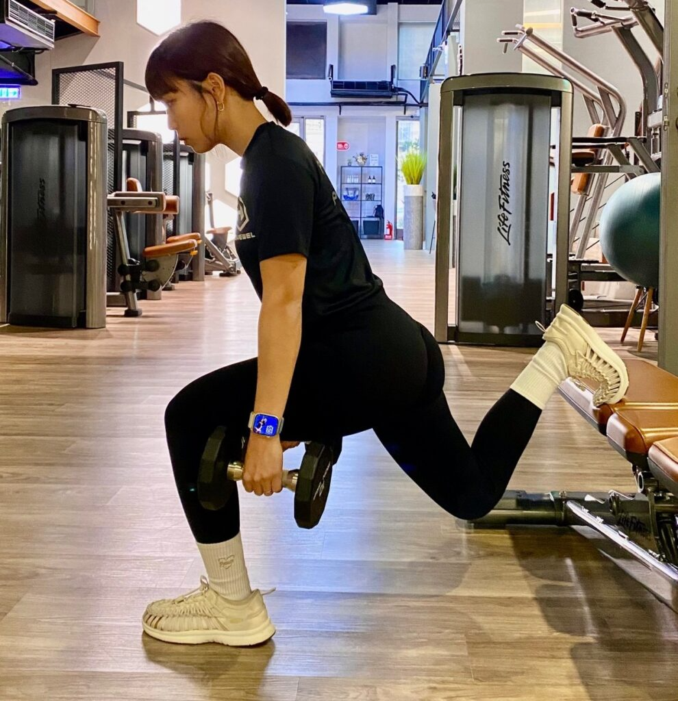✔小技巧: 膝蓋與腳尖方向一致,保持前腳穩定,避免後腳過度施力。