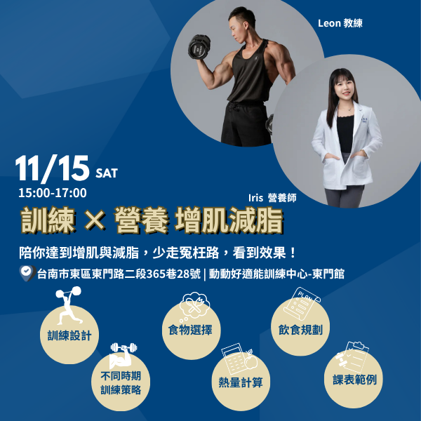 這堂課會教你如何用正確的 「訓練 × 營養」,真正達到增肌與減脂,少走冤枉路,看到效果!