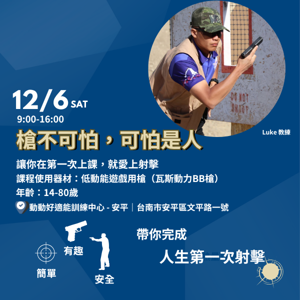 完全不用擔心!Luke教練用最簡單、最安全、最有趣的方式,帶你完成人生第一次射擊💥