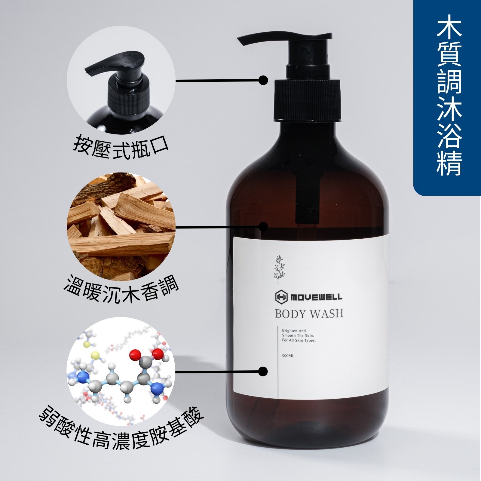 沉浸在溫暖木質香氛,享受療癒沐浴時光。以單純、潔淨、安心為設計理念,高濃度胺基酸配方,溫和洗淨、泡沫細緻綿密,洗後肌膚清爽不緊繃。敏感肌也能安心使用,讓每一次沐浴都成為舒適的儀式感。