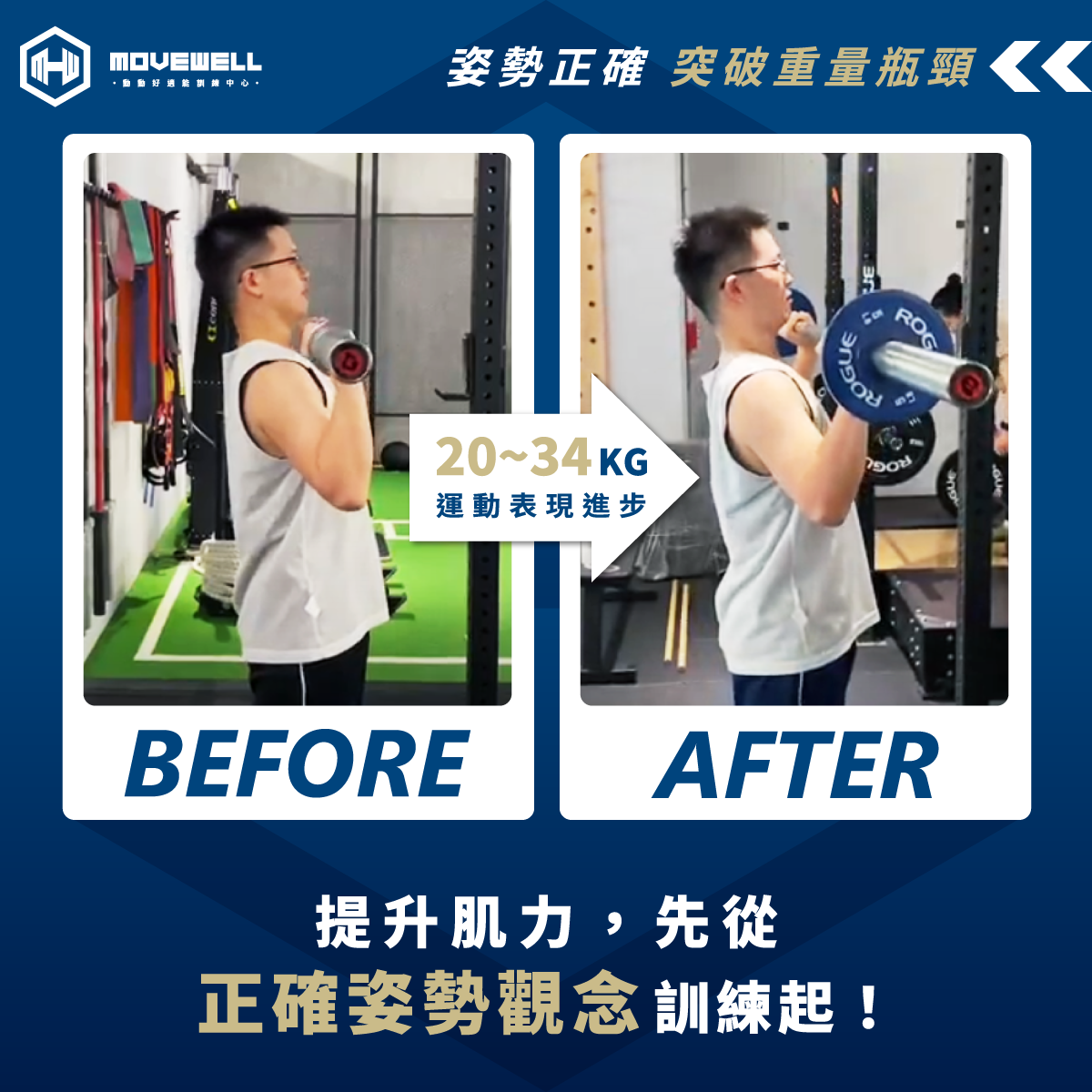 姿勢不良是很常見的問題,許多剛開始接觸重訓的朋友,會因為太習慣錯誤的姿勢,導致重訓時經常碰到重量瓶頸。一些自主訓練的朋友經常會詢問重量瓶頸的問題,覺得是自己的肌力不足導致的,但這其實是本末倒置的觀念,必須先建立起正確的姿勢觀念與啟動肌肉訓練,才能再增加重量、有效提升肌力。