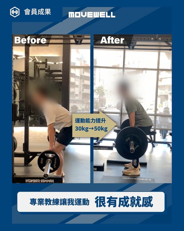 原先腰部舊傷,也似乎因為自由重量與核心的訓練,有了改善。現在就算工作久坐,下背出現緊繃狀況,稍作舒緩按摩就ok沒問題了呢!