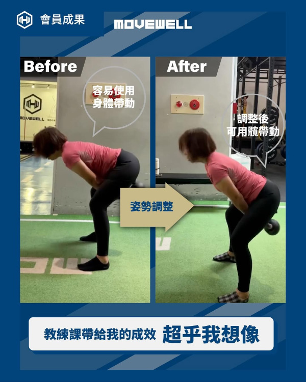 最近壺鈴也是練得很有心得,之前看先生練壺鈴,都不知道細節這麼多。我從身體不協調,到知道臀部怎麼發力,Darren教練都會一一拆解教學,也讓我避免受傷,練得更有成效。