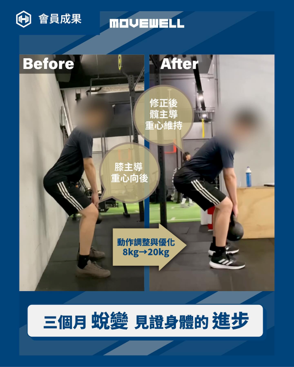 而經過教練細心的指導及動作微調,這3個月間儘管辛苦,課程結束時總是氣喘吁吁,但相較於身體的疲累,心情卻意外的愉快,除了激素的分泌外,或許也是因為看見自己以可見的速度在進步的成就感,不僅動作越來越標準,過去所困擾的腰部緊繃也不再發生,能夠承受的負重也隨之上升。感謝教練的指導,讓我能重拾健身這項運動,期待未來也能持續不輟。