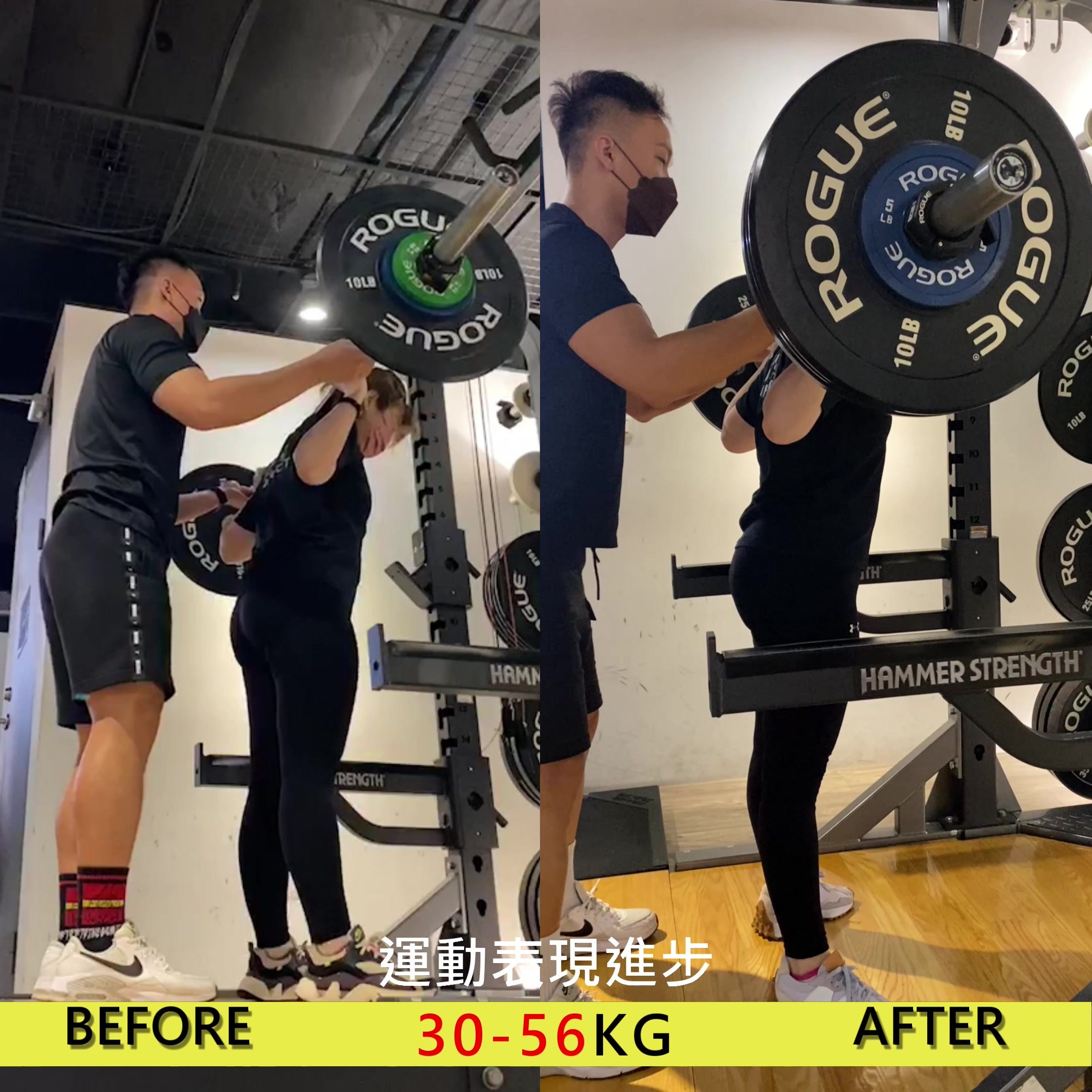 力量的訓練進步明顯,體態改變上也讓周圍朋友同事有感✔